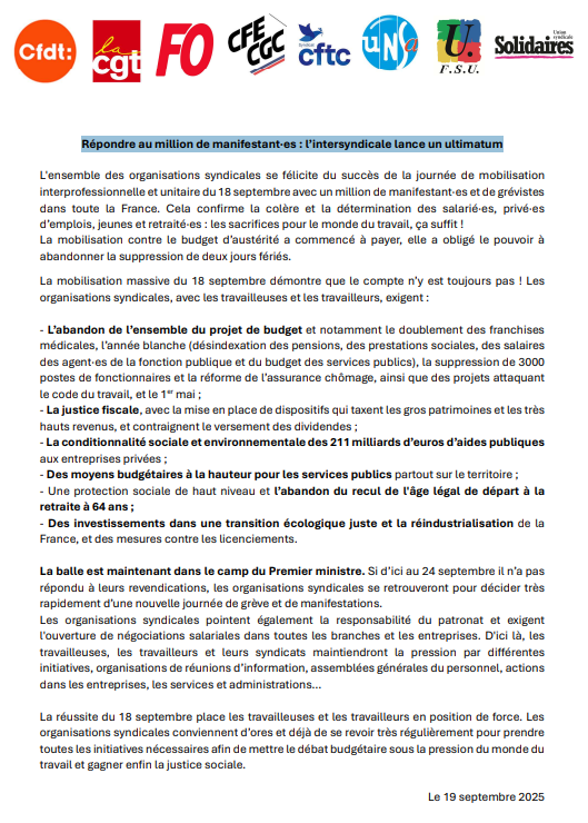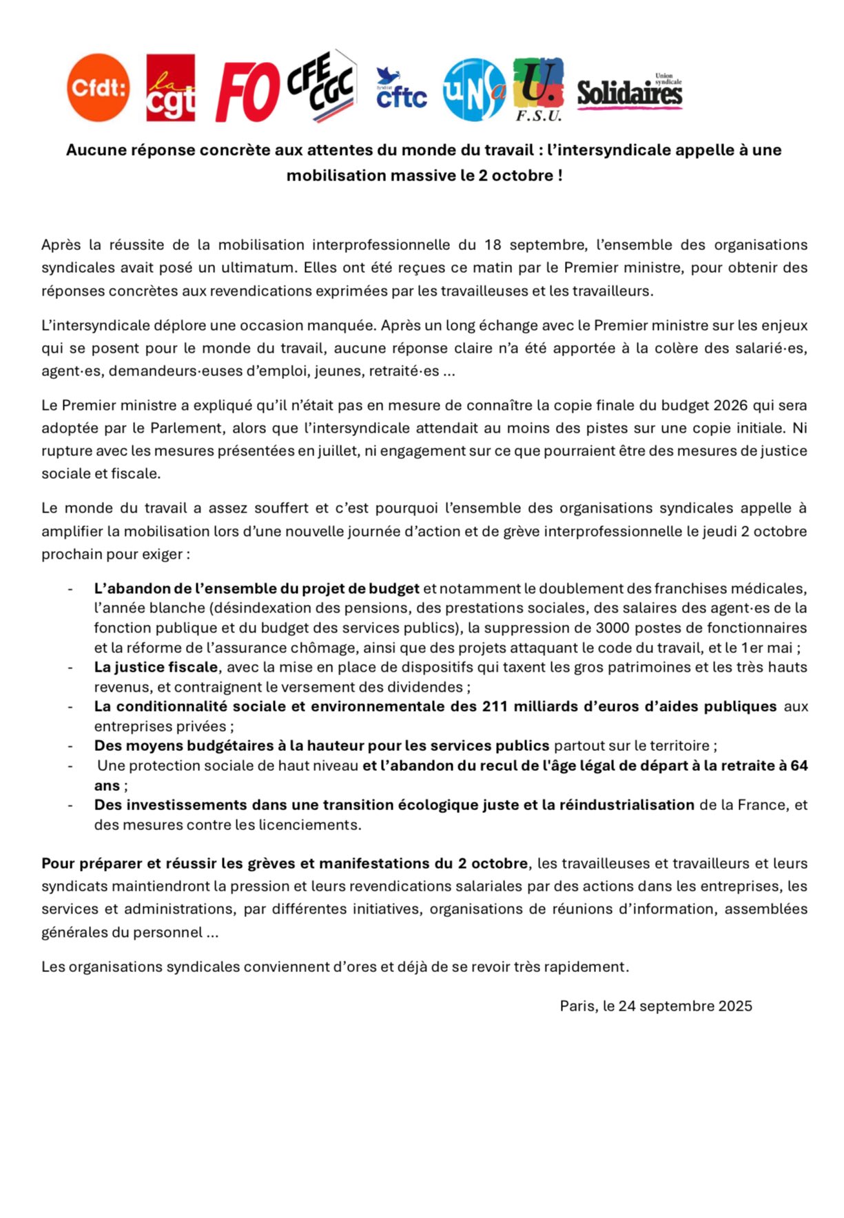 Lors de son discours de politique générale, le Premier ministre a annoncé la suspension de la réforme des retraites jusqu’aux prochaines élections présidentielles. Cela signifie que les générations nées en 1964 et en 1965 pourraient partir quelques mois plus tôt que prévu, à 62 ans et 9 mois et avec 170 trimestres de cotisations. Nos organisations saluent cette première avancée après de longs mois de mobilisations dans l’unité,