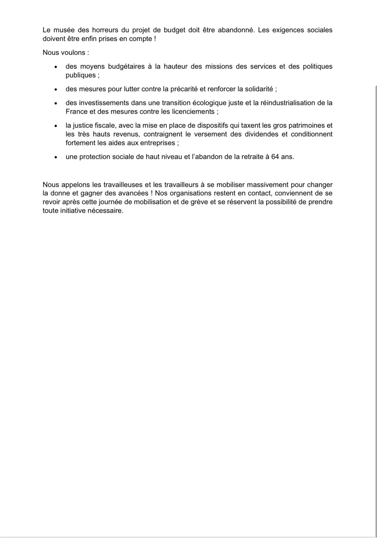 L’intersyndicale appelle à une journée de mobilisation le 18 septembre sur tout le territoire.