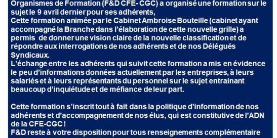Dernière ligne droite pour la mise en place de la Nouvelle Classification dans la Branche des Organismes de Formation.