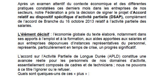 Covid 19 – Branche des Bureaux d’Etudes Techniques. Accord relatif au Dispositif Spécifique d’Activité Partielle (DSAP) – Les raisons d’une signature