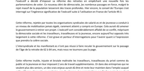 Réforme des retraites : l’intersyndicale se mobilisera “dans les mois qui viennent”