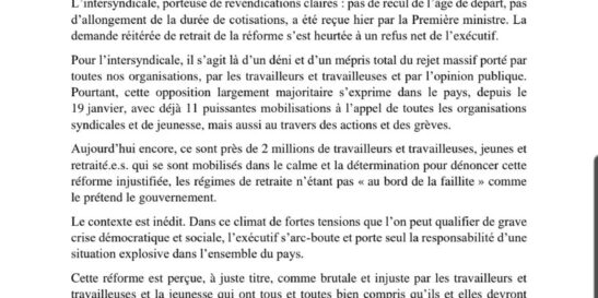 Réforme des retraites : une onzième journée de mobilisation au lendemain de la rencontre entre Elisabeth Borne et l’intersyndicale